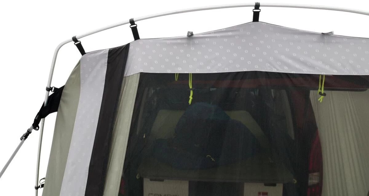 Das Sandcrest ist perfekt für Camping und Kurztrips zum Kochen, als Tagesunterkunft oder Umkleidekabine. Man wied den Wert des zusätzlichen Raumes zu schätzen wissen, den das geniale Sandcrest für ein komfortableres Van-Leben bietet. Dank des intelligenten Designs kann man die Heckklappe sicher schließen und verriegeln, wenn mannzu einer Wanderung oder zu einer Radtour aufbrechen, oder lässt die Heckklappe nachts geöffnet, während man den Van mit dem internen Insektenschutzgitter für eine gute Belüftung sichet. Durch das clevere Befestigungssystem werden Schiebentüren nicht durch Abspannseile blockiert. Im großen Zelteingang ist ein Insektenschutzfenster, welches mit einem wasserdichten Vorhang verschlossen werden kann.