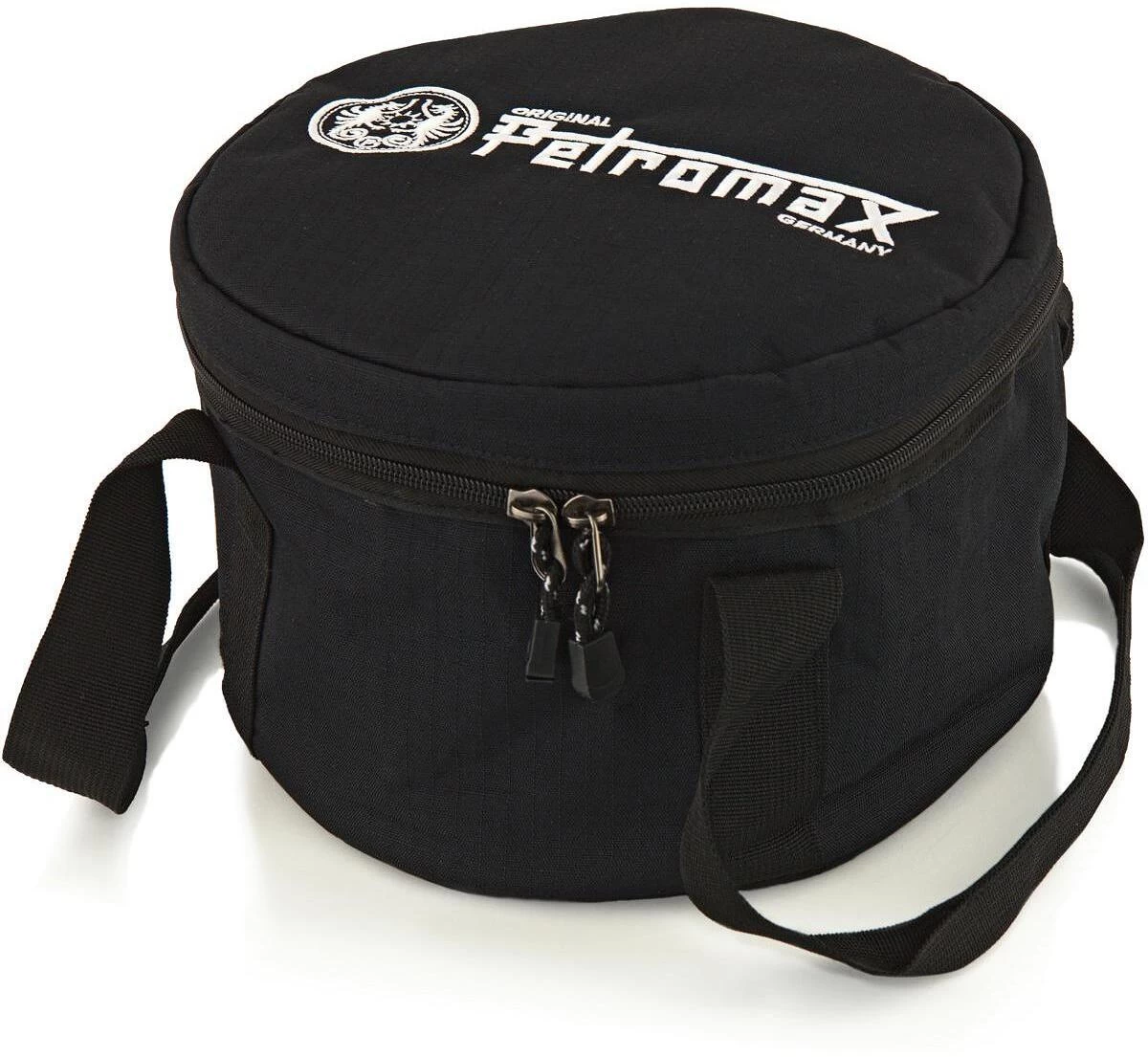 In den Petromax Transporttaschen können Feuertöpfe oder Kastenformen einfach und elegant verstaut werden. Die Taschen sind aus robustem Ripstop Gewebe gefertigt und mit dem Petromax Logo bestickt. Sie bieten eine stabile, saubere und hochwertige Transport- und Aufbewahrungsmöglichkeit für die bekannten Dutch Oven. Im Inneren des Taschendeckels befinden sich eine geräumige Reißverschlusstasche sowie zwei Netzeinschubtaschen. So können Zubehör-Teile wie z. B. der Petromax Zunder, der Mini- oder der Profi-Gasbrenner einfach verstaut und mitgeführt werden.