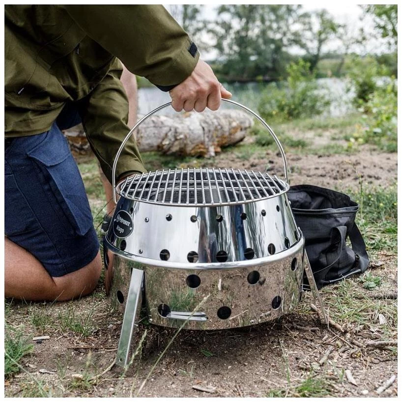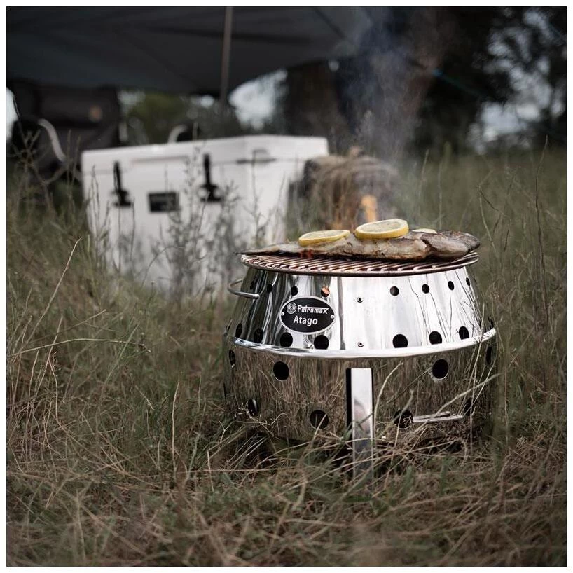 Der Atago is ein absoluter Allrounder und kann als Grill, Ofen, Herd und Feuerschale verwendet werden. Zum Anfeuern eignen sich Holzkohle, Holzkohlebriketts und Feuerholz. Ausgehend von seinen vier Grundfunktionen ergeben sich zahlreiche Garmethoden und Zubereitungsvarianten. In Kombination mit einem Petromax Feuertopf oder Grill- und Feuerschale wird er zu einem erstklassigen Ofen und Herd. Dazu wird ein gusseiserner Feuertopf (z. B. der ft1, ft3, ft6 oder ft9) einfach auf die glühenden Briketts im Atago gestellt. Für Pfannengerichte kann eine Grill- und Feuerschale ohne Beine (beispielsweise fs48 oder fs56) oben auf der runden Öffnung platziert werden. Da die Schale oder der Feuertopf vom Atago umgeben wird, ist für eine optimale Hitzeausbeute gesorgt. Um das Produkt ganz klassisch als Grill zu nutzen, legt man den im Lieferumfang enthaltenen Grillrost auf. Ohne Grillrost verwendet, kann mit einem Perkolator oder Teekessel ein Heißgetränk zubereitet oder ein gemütliches Lagerfeuer für den Abend entzündet werden. Durch den einzigartigen Klapp-Mechanismus ist die innovative Grill-Ofen-Herdkombination mit nur einem Handgriff einsatzbereit oder zum Transport zusammengefaltet. Mit einer Höhe von nur 15 cm im eingeklappten Zustand kann er hervorragend und platzsparend verstaut werden.