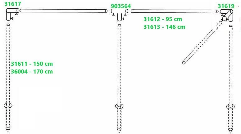 Eckverbindung für Windschutzgestänge. 3 Abzweigungen.