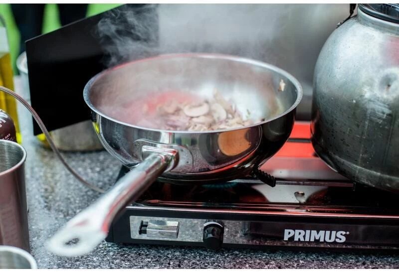 Stabile Bratpfanne aus 18/8-Edelstahl mit Bodenplatte aus Aluminium für eine gleichmäßige Wärmeverteilung. Erhältlich in zwei Größen: 21 und 25 cm. Die Pfannen können direkt auf dem offenen Feuer verwendet werden und lassen sich dank des klappbaren Edelstahlgriffs platzsparend verstauen. Tasche im Lieferumfang enthalten.
