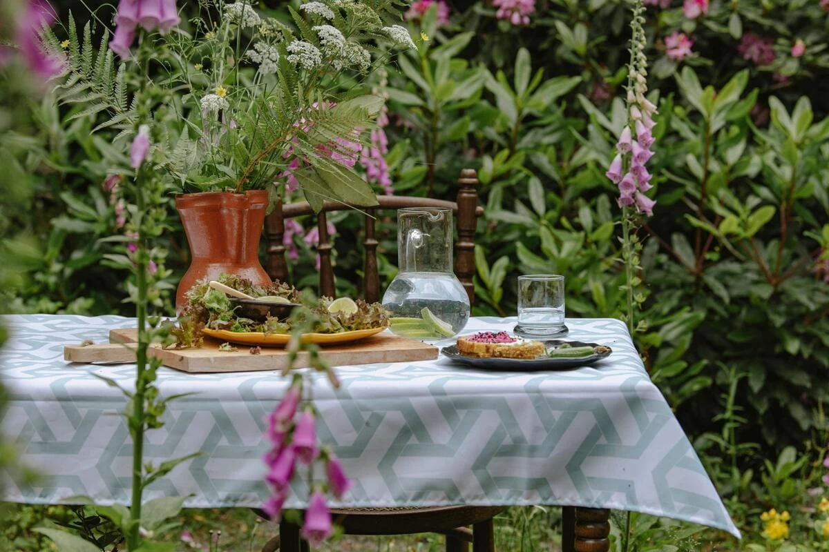 Zu einem gemütlichen Abend mit Antipasti, Tapas oder anderen Leckereien gehört eine hübsche Tischdecke. Dieses rosa-weiße Tischtuch sieht nicht nur gut aus, sondern ist auch knitterfrei, hitzebeständig und weist Wasser, Fett oder Stockflecken ab. Ein praktischer Hingucker fürs Campen, für Balkon oder Garten.