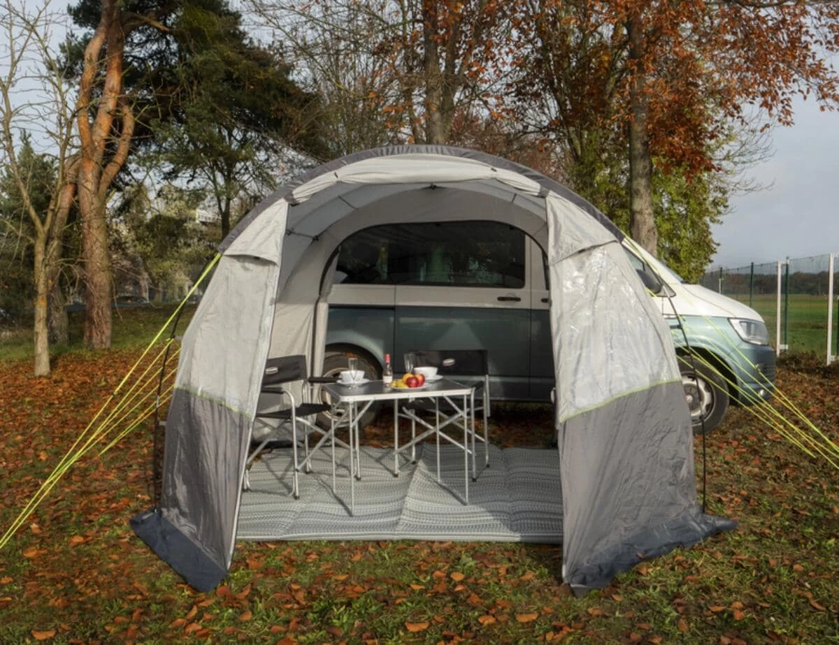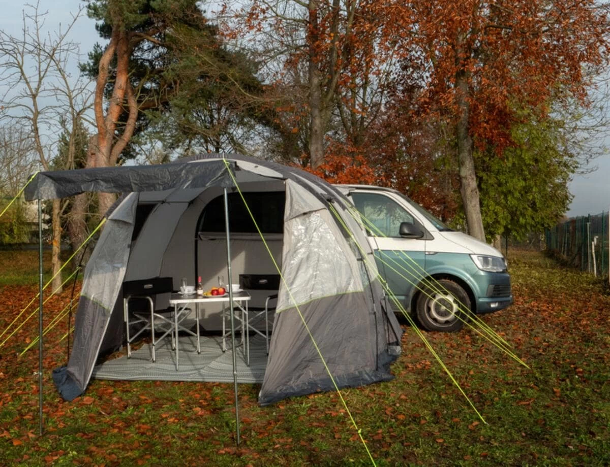 Das geräumige 2-Tunnel-Vorzelt „Tour Action 7“ überzeugt mit bewährten und neuen optimierten Details.