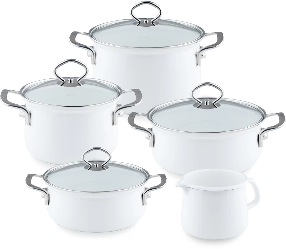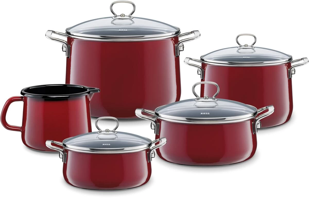 - Emailleset 5-teilig (3 Töpfe, 1 Kasserole, 1 Pfanne)