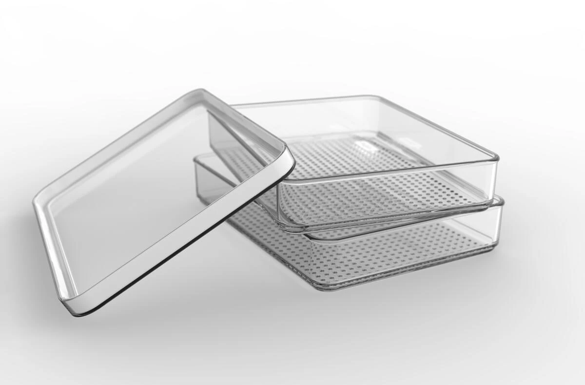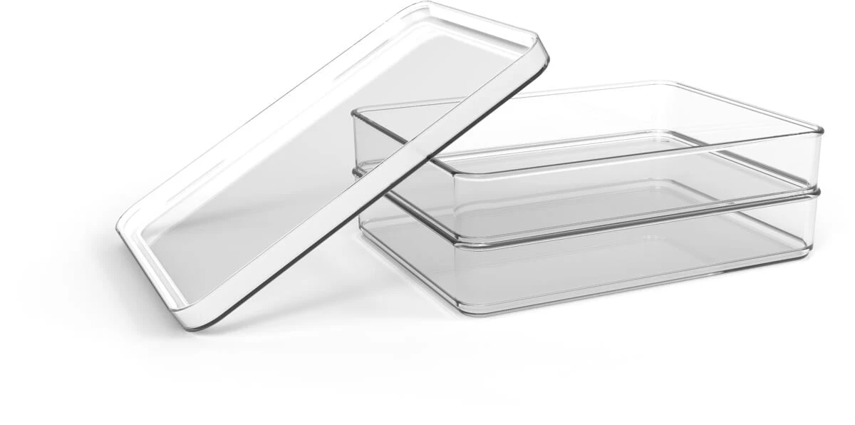 Das edle Foodcenter LOFT hilft, Übersicht und Ordnung zu schaffen und im Kühlschrank Platz zu sparen. Es besteht aus zwei einzelnen Behältern und einem Deckel, es können aber auch weitere Behälter ohne Probleme aufeinandergestapelt werden. Dank des schlichten und eleganten Designs ist der Kühlschrank stets wunderbar aufgeräumt und die transparenten Unterteile bieten jederzeit Einsicht auf den Inhalt. Aufgrund der Gummidichtung im Deckel werden die Speisen aromadicht verschlossen und behalten somit ihren Geschmack. Ob Käse, Aufschnitt, Früchte – dank der kleinen erhöhten Punkte im Boden liegen die Lebensmittel nicht im Kondenswasser und bleiben somit länger frisch.