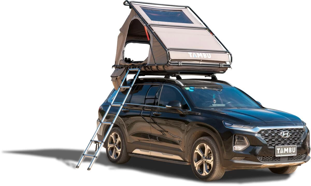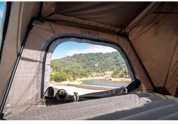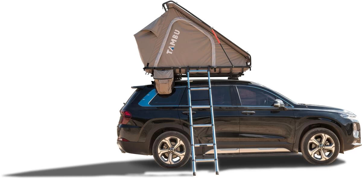 Das Yano Autodachzelt überzeugt nicht nur durch sein geringes Gewicht von ca. 38 kg – es lässt auch in der Ausstattung keine Wünsche offen. Das Material ist ein 180 g/m² recyceltes Ripstop TC (Baumwollmischgewebe aus 65 % Polyester und 35 % Baumwolle). Das Zelt verfügt über eine hervorragende Belüftung und viele weitere durchdachte Details, wie z. B. eine Aufbewahrungstasche für Schuhe und ein Fenster zum Blick in den Sternenhimmel. Das Dachzelt lässt sich mit Hilfe eines Dachträgers in wenigen Schritten befestigen und kann damit fahrzeugunabhängig montiert werden. Eine bequeme Luftmatratze aus TPU, eine Ausziehleiter und eine Schutzhülle sind im Lieferumfang enthalten. Dieses Zelt ist komplett PVC-frei und eines der leichtesten Dachzelte auf dem Markt. Trotz der einfachen Konstruktion bietet es viel Schlafkomfort. Durch den Prasselschutz, den Sie bei Regen von außen am Zelt befestigen können, haben Sie im Inneren des Zelts eine ruhigere Nacht.