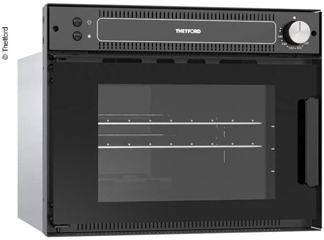 Der Ofen 420 passt dank seiner Breite von nur 420 mm auch in kleinere Küchen und bietet Ihnen großen Komfort. Er kann unter der Arbeitsfläche installiert werden, auf Brusthöhe oder über dem Kühlschrank der Thetford N3140-Serie.
