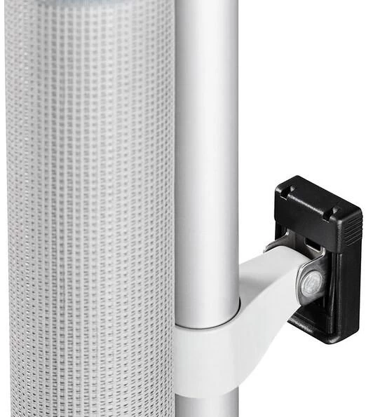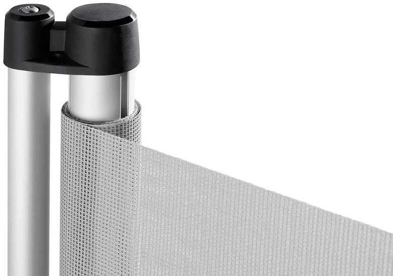 Ein Windschutz der besonderen Art. Der sich selbst aufrollende Windschutz aus pflegeleichtem PVC-Gewebe ist 140 cm hoch und bis 300 cm lang. Die einfache Befestigung des Windschutzes erfolgt an dem vorhandenen oder mitgelieferten Stützfußhalter der Markise. Durch die angenähten Klettbänder kann der Windschutz an einem Stützfuß der Markise, aber auch mittels beiliegenden Abspannleinen und Heringen frei abgespannt werden.