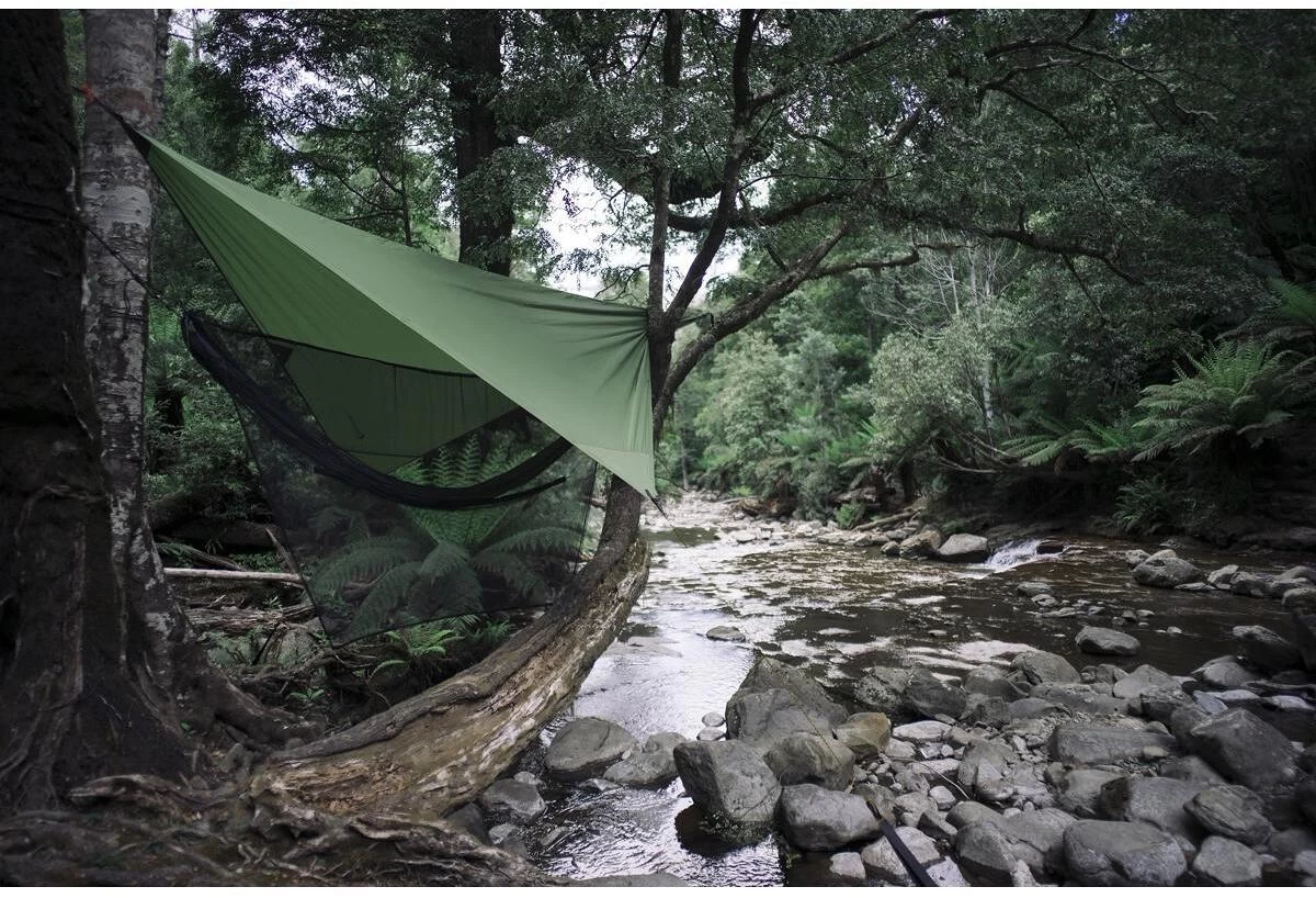 Das Moon Tarp ist eine Hängemattenplane, die als Sonnenschutz, Bodenplane oder Unterschlupf dient. Das Tarp passt, diagonal gespannt, perfekt über nahezu jede übliche Hängematte. Mit noch nicht einmal 700g eignet es sich für verschiedene Outdoor-Aktivitäten, wie z.B: zum Fischen, Camping, als Vorzelt für den Bus, zum Relaxen am Strand oder im Garten.
