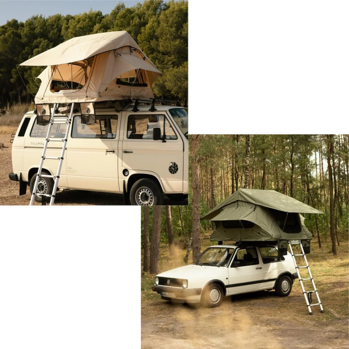 Das Dachzelt kann so ziemlich auf jedem Fahrzeug montiert werden (ausgenommen Cabrios). Achte jedoch darauf, dass das zulässige Gesamtgewicht deines Fahrzeugs durch die Montage des Dachzelts nicht überschritten wird und stell sicher, dass dein Fahrzeug eine dynamische Dachlast von mindestens 75 kg aufweist. Die dynamische Dachlast ist das maximale Gewicht, das das Dach während der Fahrt tragen kann. Bei den meisten Fahrzeugen liegt die maximale dynamische Dachlast zwischen 75 kg und 100 kg, jedoch bezieht sich diese Angabe auf die Belastung während des Fahrbetriebs. Im Stand darf das Gewicht, das auf das Dach einwirkt, deutlich höher sein.