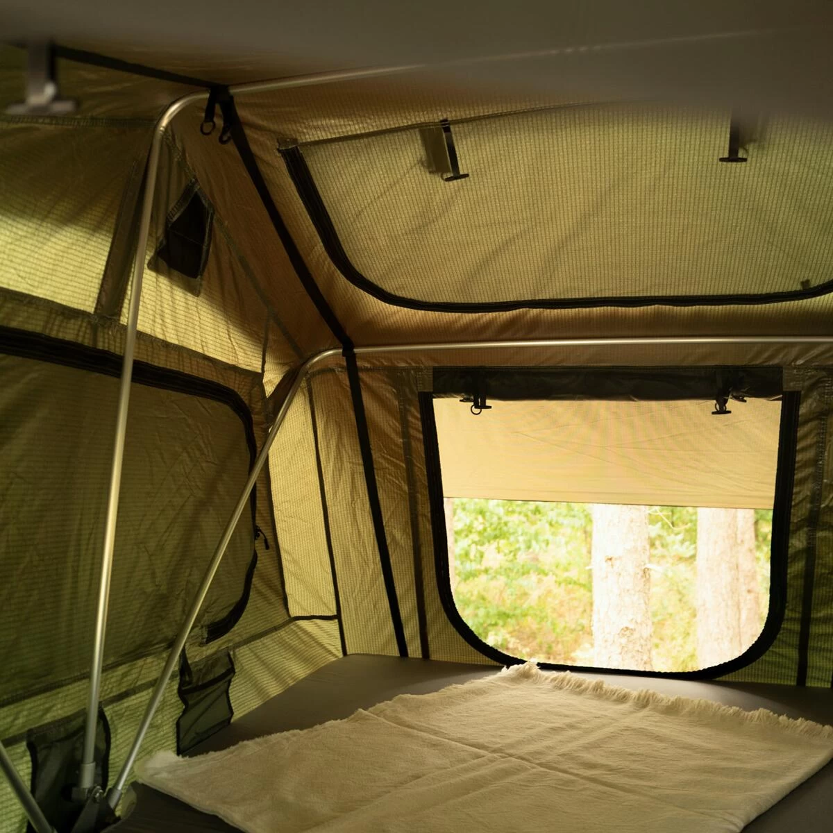 Das TILLHÅLL Short ist der kleine Bruder vom TILLHÅLL Extended Dachzelt. Es kommt mit allen Features, die du bereits vom TILLHÅLL Extended kennst und hat trotz seines kompakten Designs eine Liegefläche von 1,40 x 2,40 m. Der Unterschied zum TILLHALL Extended besteht darin, dass das TILLHALL Short keinen überdachten Einstieg hat und du somit nicht die Option hast, das TILLHALL Vorzelt zu ergänzen. Dafür lässt sich das TILLHALL SHORT jedoch schneller auf- und abbauen, ist leichter und somit insbesondere für Kleinwagen besonders gut geeignet. Die gewichtsparende, aufklappbare Konstruktion, bietet ein großes Platzangebot während der Reise und kann für die Lagerung kompakt verstaut werden. Die Installation ist denkbar einfach und lässt sich schnell mittels Handschrauben auf dem Autodach montieren. Bettwäsche und Kissen können im geschlossenen Zelt verstaut werden. Somit spart man wertvollen Platz im Kofferraum. Die Fenster lassen sich ab sofort nicht nur mithilfe der Federstangen aufspannen – Wenn du möchtest, kannst du die Federstangen jetzt auch einfach weglassen und die Fenster aufrollen, sodass sich dein TILLHÅLL Dachzelt noch schneller auf- und abbauen lässt.