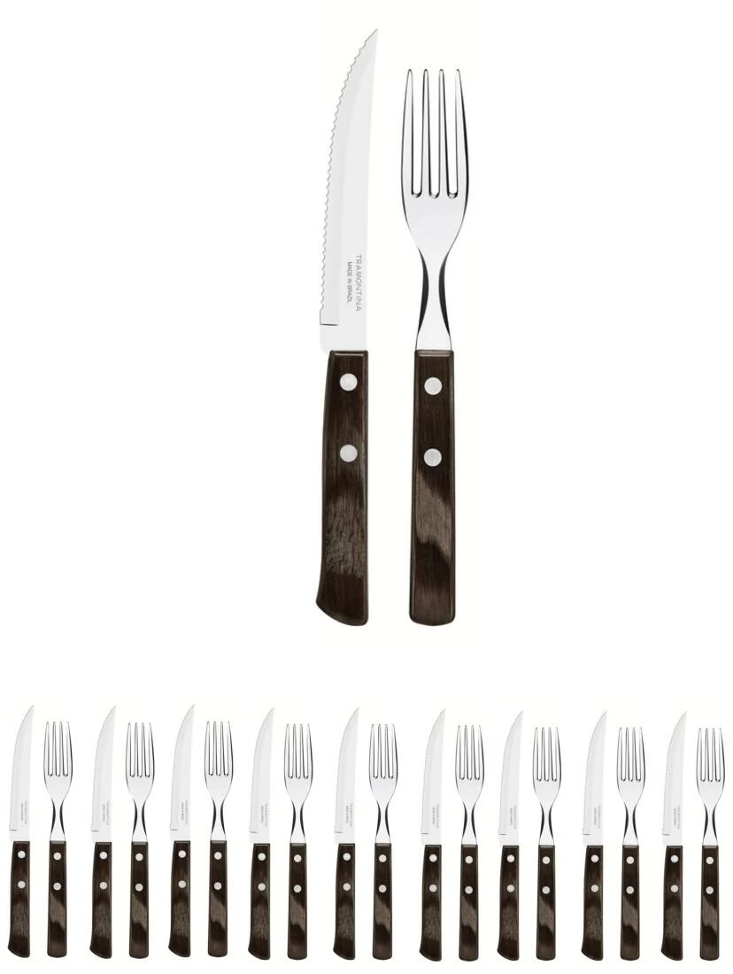 - 12-teiliges Set, bestehend aus 6 Steakmessern und 6 Steakgabeln