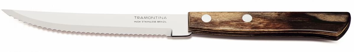Das perfekte Grillerlebnis lässt sich am besten im Freundeskreis zelebrieren. Köstlich duftendes Fleisch auf dem Grill und nette Gesellschaft – schöner kann man den Tag nicht ausklingen lassen. Damit auch jedem Gast ein stilgerechtes Besteck zur Verfügung steht, bietet TRAMONTINA das 12-teilige Steak-/Pizzabesteck-Set aus rostfreiem Edelstahl AISI 420 (DIN 1.4028) an. Die handlichen Griffe sind aus mehreren Schichten Kiefernholz gearbeitet, die mit Harz imprägniert, anschließend gepresst, geschnitten und poliert werden. Dieses ist extrem widerstandsfähig, temperaturunempfindlich und stoßfest. Das Steak-/Pizzabesteck-Set für sechs Personen ist spülmaschinenfest und kann durch seine lange Schnitthaltigkeit überzeugen.