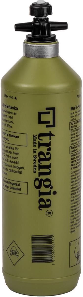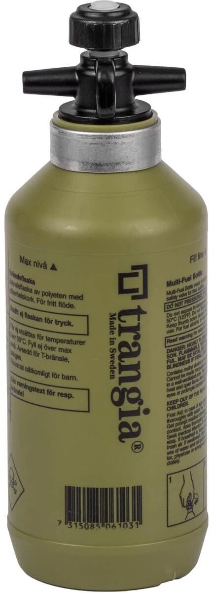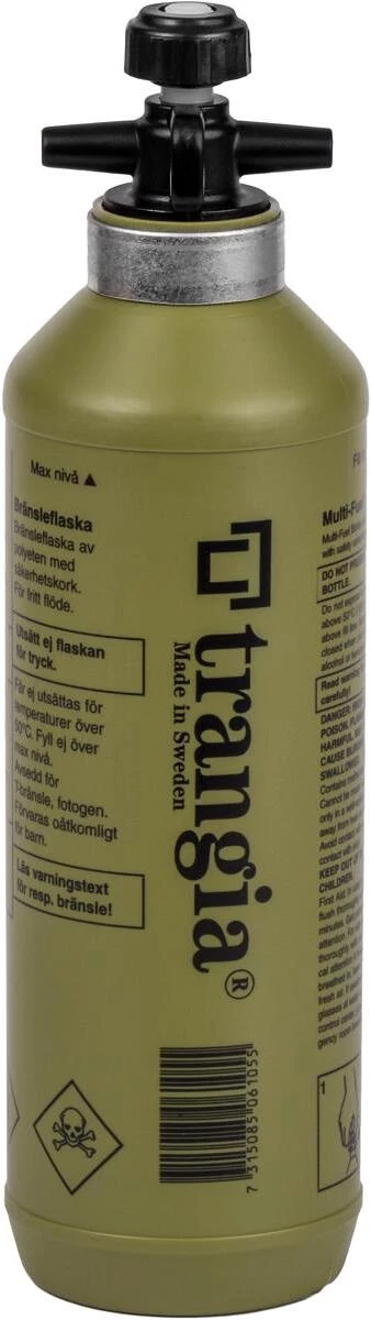 Brennstoffflasche zum sicheren Befüllen des Spiritusbrenners. Die einzigartige Konstruktion des Sicherheitskorkens ermöglicht das Ausgießen der Flüssigkeit, ohne den Korken zu entfernen.