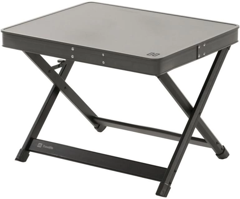 Mit der Tischplatte Cosa wird ein Travellife Hocker zum Beistelltisch. Sichere Befestigung mit Klickschnalle.