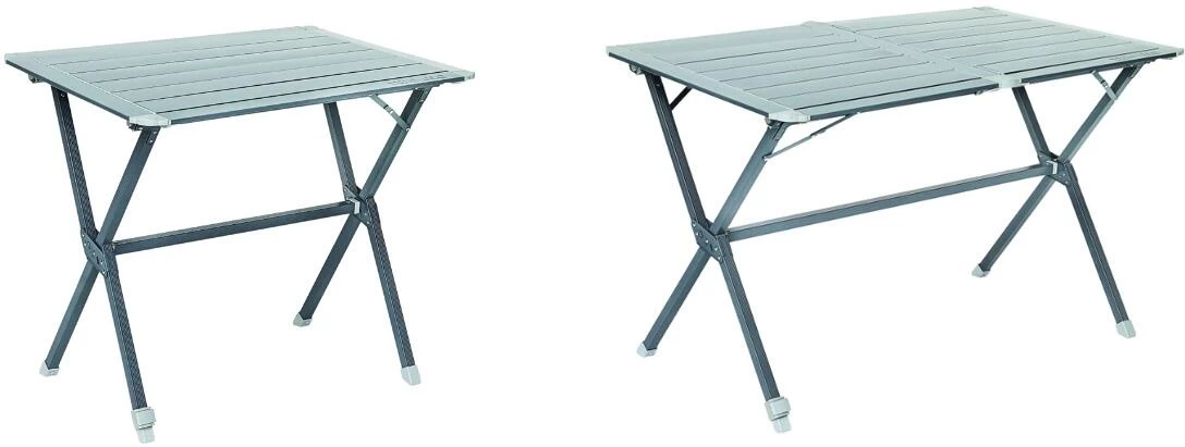 Außergewöhnlich robuste Alu-Tische mit verstellbaren Tischbeinen. Tischplatte aus lackiertem Aluminium mit neuem Lattenverbindungssystem durch Kunststoffkette. Tischbeine aus Aluminium (ø 25 mm), mit Verstärkungsstange. Wird mit einer praktischen Tragetasche geliefert.