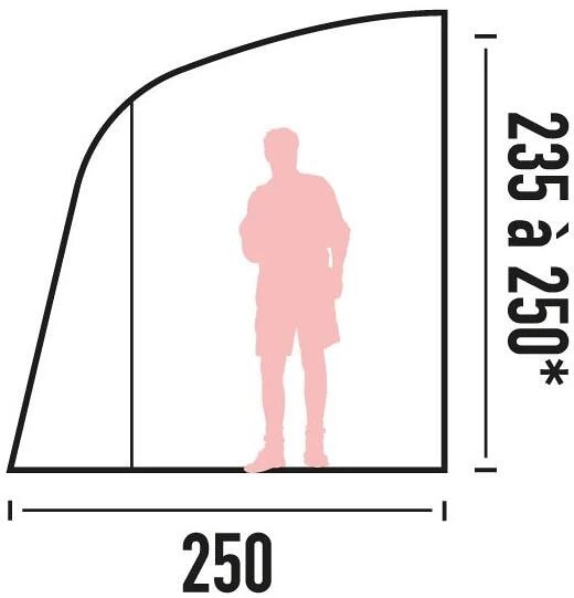 Profitieren Sie von der Air Camp-Technologie, einer TRIGANO-Innovation, die die Installation vereinfacht und das Volumen erheblich reduziert. Dieses aufblasbare Vorzelt ist sehr einfach aufzubauen. Die Front ist abnehmbar und kann zur Vergrößerung der Wohnfläche aufgerollt werden. Die beiden Seitentüre sind mit Moskitonetzen versehen. Um die Privatsphäre zu gewährleisten, wurden vor den Fenstern verdunkelnde Innenjalousien angebracht. Das Vorzelt ist für eine Fahrzeughöhe von 235 cm bis 250 cm geeignet.