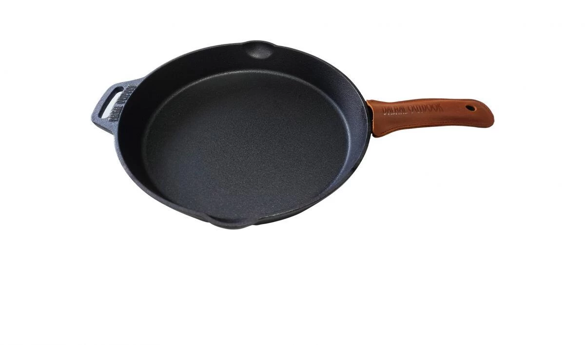 Gusseisen ist ein Material, das Wärme sehr gut speichert und daher sehr heiß werden kann. Valhal Outdoor hat den VH.SLEEVE entwickelt, um das Kochen mit gusseisernen Pfannen mit Griff etwas einfacher zu machen, ohne den harten Charakter zu beeinträchtigen. Ein Überzug aus echtem Leder für den Griff der Pfanne. Er passt um die Pfannen mit Griff von Valhal Outdoor, aber eigentlich um jeden Pfannengriff mit ähnlichen Abmessungen.