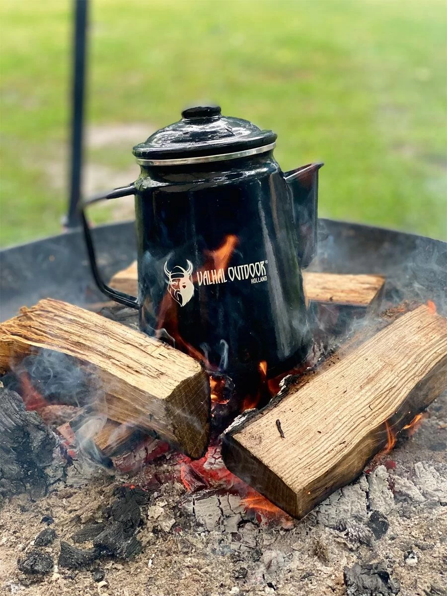 Wenn Sie Kaffee mit einer Perkolator zubereiten, erhalten Sie den geschmackvollsten und aromatischsten Kaffee. Mit dem Perkolator von Valhal Outdoor können Sie den leckersten Kaffee zu Hause auf Ihrem Herd oder draußen am Lagerfeuer zubereiten. Dank des großzügigen Fassungsvermögens von 1,7 l bereiten Sie ungefähr 6 Tassen Kaffee gleichzeitig zu. Er ist mit einem großen Auslauf ausgestattet, der das Eingießen etwas erleichtert. Der Perkolator von Valhal Outdoor hat auch einen großen Griff, sodass Sie ihn bequem mit Grillhandschuhen greifen oder auf ein Dreibein hängen können.