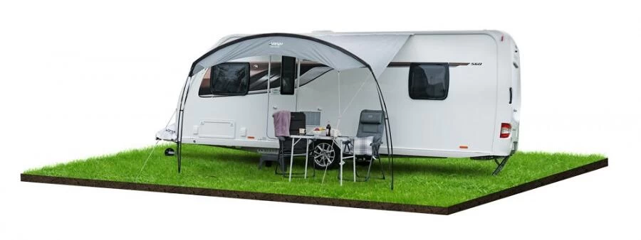 Die Überdachung Sun ist so konzipiert, dass sie neben dem Wohnwagen, Reisemobil oder Wohnmobil einen geschützten überdachten Außenbereich bietet. Sie kann einfach mit dem vormontierten Kador-Streifen befestigt werden und sorgt so für einen sauberen Sitz an der Seite Ihres Fahrzeugs.