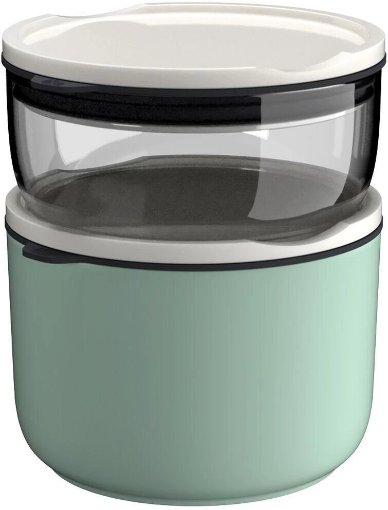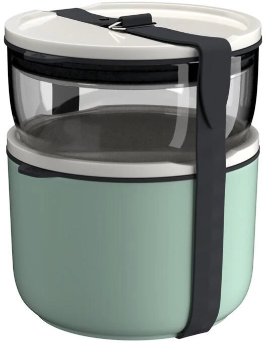 Die Kollektion ToGo & ToStay ist der trendbewusste Begleiter für alle, die umweltbewusst und gesund das Leben genießen wollen. Egal ob für Meal Prep, Einkaufen im Unverpackt-Laden oder als Vorratsbox für zuhause – mit den verschiedenen Größen findest du immer das Passende. Das coole Design in trendigen Farben sieht nicht nur stylisch aus. Durch die Verwendung von Premium Porcelain und robustem Glas sind die Artikel geschmacksneutral und sicher vor Verfärbungen. So macht Umweltbewusstsein gleich doppelt Spaß. Das Set aus 2 Lunchboxen ist ideal zum Transportieren von vorbereitetem Essen fürs Büro oder zum Picknick. Die Boxen lassen sich ganz einfach aufeinander stapeln. Das praktische Silikonband lässt sich um das Set legen, damit sie aufeinander stehen bleiben. Durch das hochwertige Premium Porcelain und Glas in Kombination mit der Silikondichtung eignet sie sich auch zum Aufbewahren von Lebensmitteln oder als No-Waste-Alternative bei deinem Einkauf.