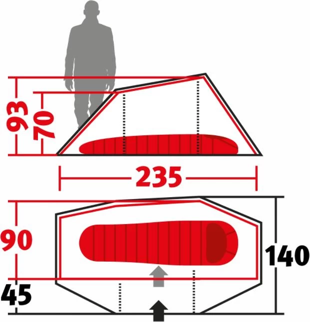- Größe Innenzelt: (LxBxH)235 x 90 x 93 cm