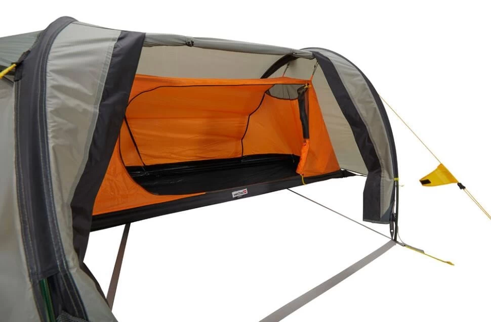 Das Aurora 1 ist ein neues sehr komfortables aber dennoch leichtes ein Personen Zelt mit außenliegendem Gestänge. D.h. das Zelt kann mit eingehangenem Innenzelt in einem Rutsch aufgebaut werden. Die durchlaufenden Gestängekanäle erleichtern den Aufbau. Das Zelt ist zur Fußseite etwas flacher gehalten um Gewicht zu sparen und die Aerodynamik zu verbessern. Das Aurora 1 hat relativ kleine Flächen und ist somit sehr Windstabil und auch für gemäßigten Wintereinsatz tauglich. Das Außenzelt verfügt über vier verschließbare Apex-Ventilationsklappen. Die Außenzelttür kann im geöffneten Zustand mit zusätzlichen Stangen aufgestellt werden und bietet somit einen hervorragenden Regenschutz. Das Innenzelt bietet eine komfortable Sitzhöhe von 93cm und genügend Platz an der Seite für einiges an Gepäck. Ferner verfügt das Innenzelt über zwei abdeckbare Lüftungsöffnungen sowie eine Tasche zum Verstauen der Kleinigkeiten. Die obere Hälfte der D-Formigen Innenzelttür besteht aus Mosquitogazen.