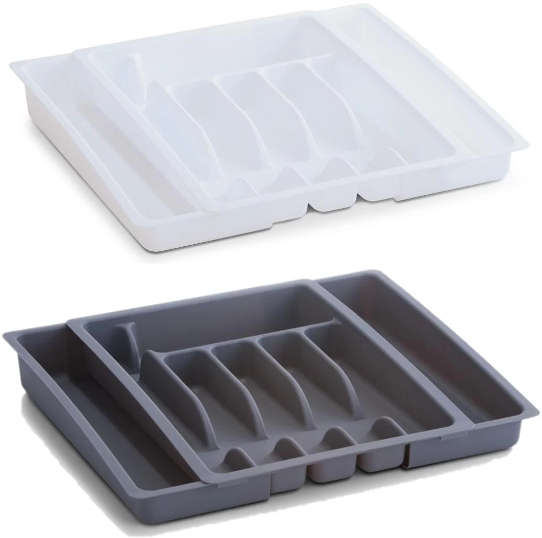 Dieser hochwertige Besteckkasten aus robustem Kunststoff verfügt über 6 bis 8 getrennte Fächer und passt sich jeder handelsüblichen Schublade perfekt an. Er ist beidseitig ausziehbar und extrem pflegleicht. Vom Teelöffel bis zum Salatbesteck hat hier alles Platz. Der praktische Besteckkasten schafft mit Leichtigkeit Ordnung in Ihrer Küche. Weitere Besteckkästen sind in verschiedenen Ausführungen erhältlich.